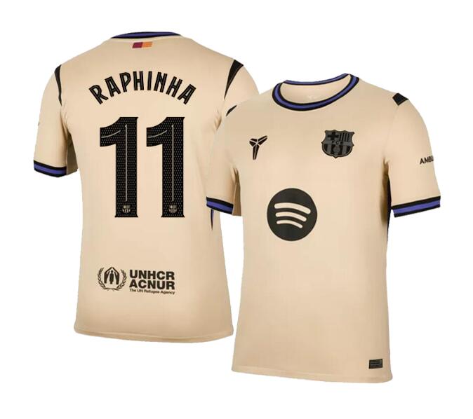 Raphinha #11 Barcelona Away Fan Soccer Jersey 2025/26 UCL